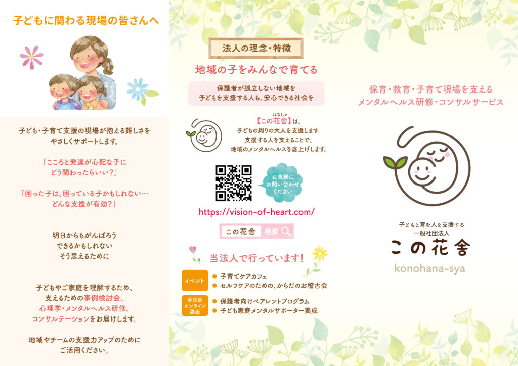 公式LINEは「子どもと育む人を支援する 一般社団法人この花舎」です。